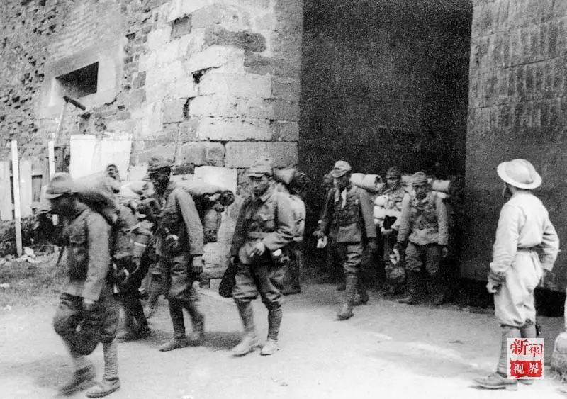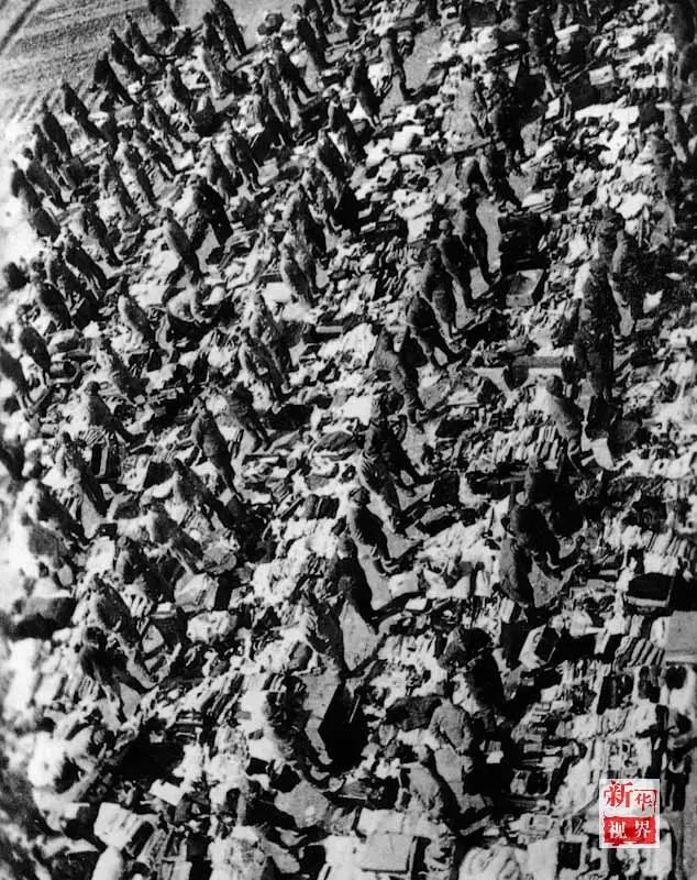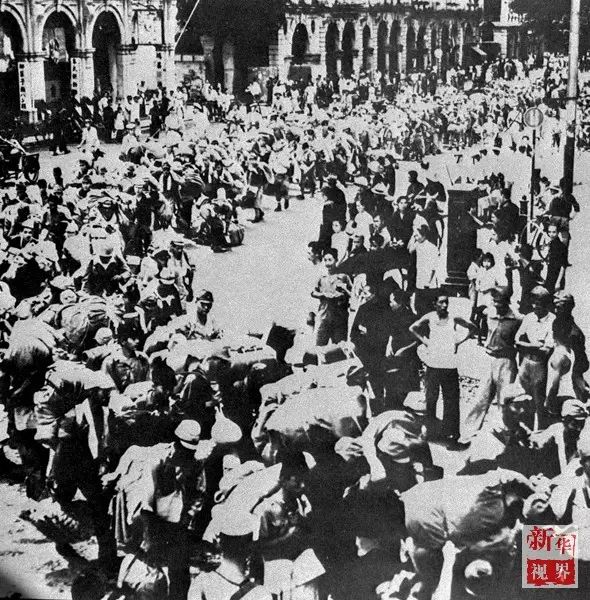 ↑投降后集结在武汉的日本侵略军士兵。