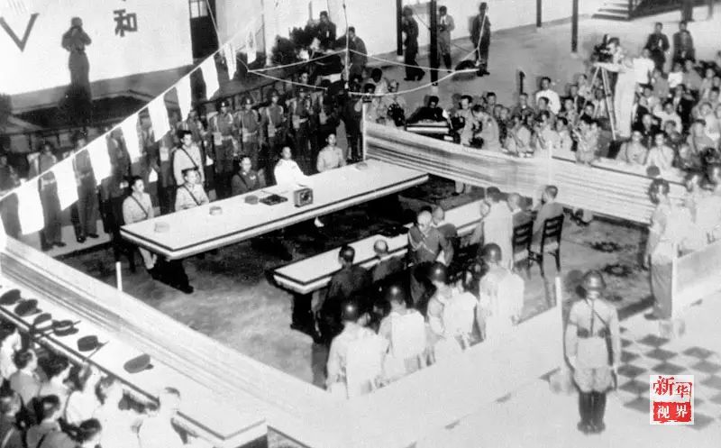 ↑中国战区日军投降签字仪式在南京举行(1945年9月9日摄)。