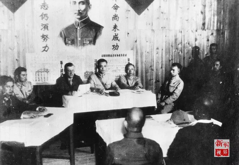 ↑侵华日军总司令冈村宁次派出的今井武夫等人在湖南芷江向中国军队洽降(1945年8月21日摄)。