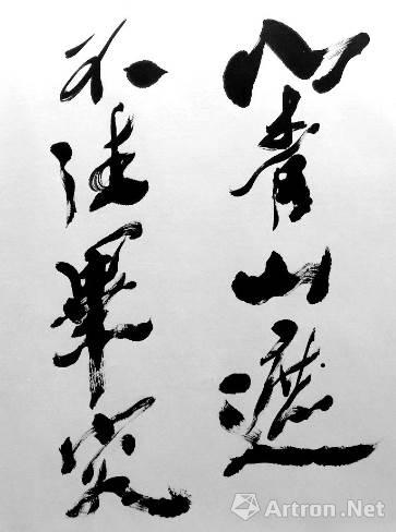 书李白《与夏十二登岳阳楼》、辛弃疾《菩萨蛮 书江西造口壁》,此两幅书其法象:俯仰有仪,方不中矩,圆不副规。笔势峻险苍古,远而望之,若鸿鹄群游,如鹤舞翩跹,络绎飞动,纵肆婀娜;龙腾于川,雨坠于天。流苏悬羽,扬波腾气之势,有如“势来不可止,势去不可遏”之妙。“干裂秋风,润含春雨”笔墨通贯全篇,其笔体金篆隶草真、飞白、八分并用而相混成,笔法方圆兼施,疾涩、藏露、刚柔、平侧、及点线条变化多端而浑然天成,书体结构精绝,雄浑潇洒,奇正相生,大开大合而不逾矩。如其篆味、碑味笔法,气势韵味更为遒丽恢弘,瑰伟岩逸、雄伟疏宕,来自自然而胜于自然,可谓进乎道之境界也。而字体自然奔放,粗细枯润变化有度,阴阳刚柔开阖气势雄逸,错落有致,开阔疏朗,气势恢弘;飞白华美,奇姿百出,得遒丽和妍丽之美,灿烂无比;体式分间布白变化自然多样而相和谐,气脉相承相应,生机勃勃而神采奕奕,真乃当世神品。