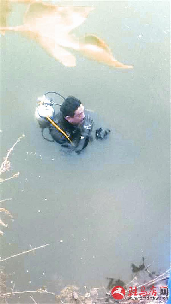汝南蛟龙水上搜救队得到消息后也赶赴现场参与营救,当地公安部门在现场指挥。但父子二人打捞上来后已经没有生命体征。据刘洋介绍,他和另外几名队员潜入水中搜寻白色越野车。找到的越野车之后,他们用吊车把车从水里打捞上来。