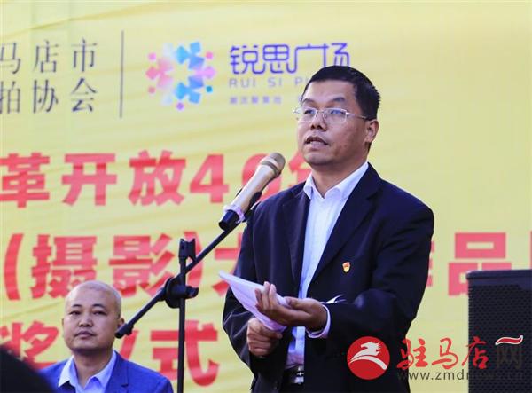 驻马店市二届政协副主席闫超宣布:正阳县改革开放40年“锐思广场杯”航拍(摄影)比赛作品展览开幕。