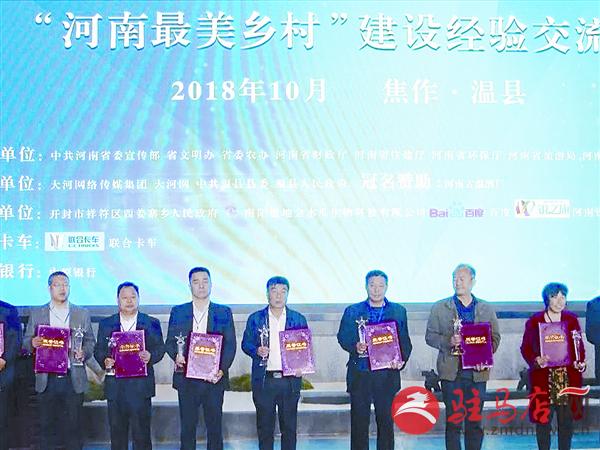 本报讯 10月29日,2018河南乡村振兴论坛暨“河南最美乡村”建设经验交流会在焦作温县举行(如图)。会上揭晓了2017“河南十大最美乡村”评选结果,并为评选出的“最美乡村”颁奖。确山县竹沟镇竹沟村入选。