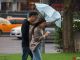 2019年4月10日,四川成都,由于遭受大风和降雨影响,气温遭遇断崖式下降,在4月9日最高温突破30℃后,4月10日平均气温却下降到15℃左右,最高降温达到15℃,市民笑称为“满30减15”。在春熙路步行街,强降温让出行的市民在风雨中雨伞被吹烂,头发也凌乱不堪,衣着单薄的市民更是冷得直哆嗦。/东方IC