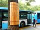近日,一个别致的古人诗词展亮相南京街头,数十首刻在竹简上的苏轼、王安石、王友亮等古代著名诗词家的诗词出现在建邺路路旁的行道树上,吸引不少市民驻足观看。王路宪/摄