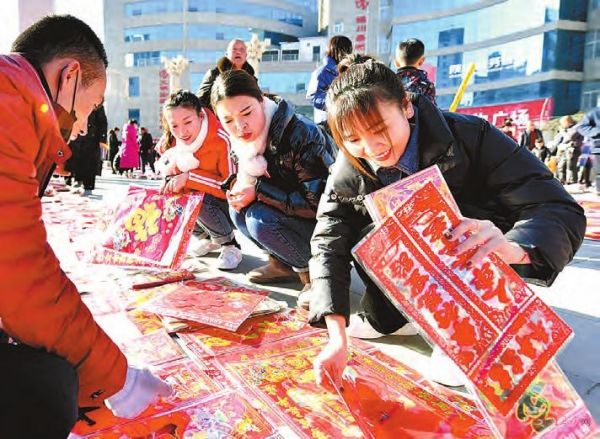 春节将至,陕西省延安市延川县文化广场上的年货集市热闹非凡。