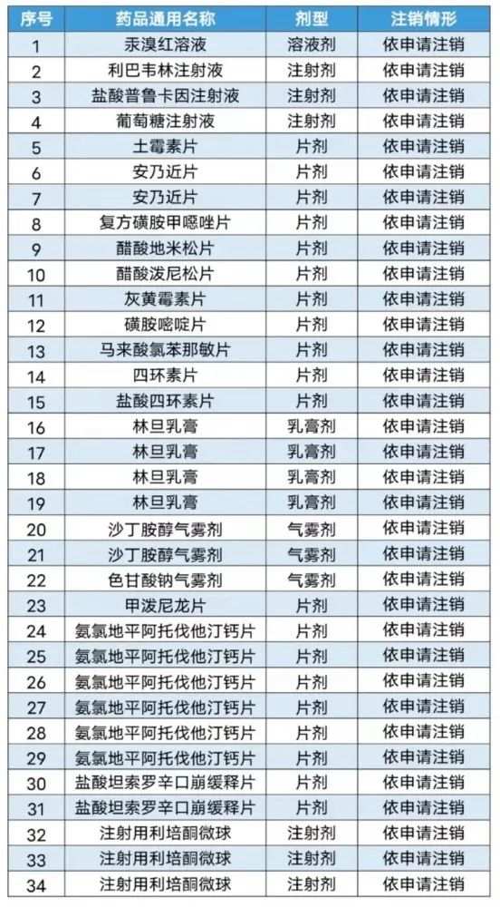 近日,国家药品监督管理局发布《关于注销汞溴红溶液等34个药品注册证书的公告(2021年第132号)》通告。
