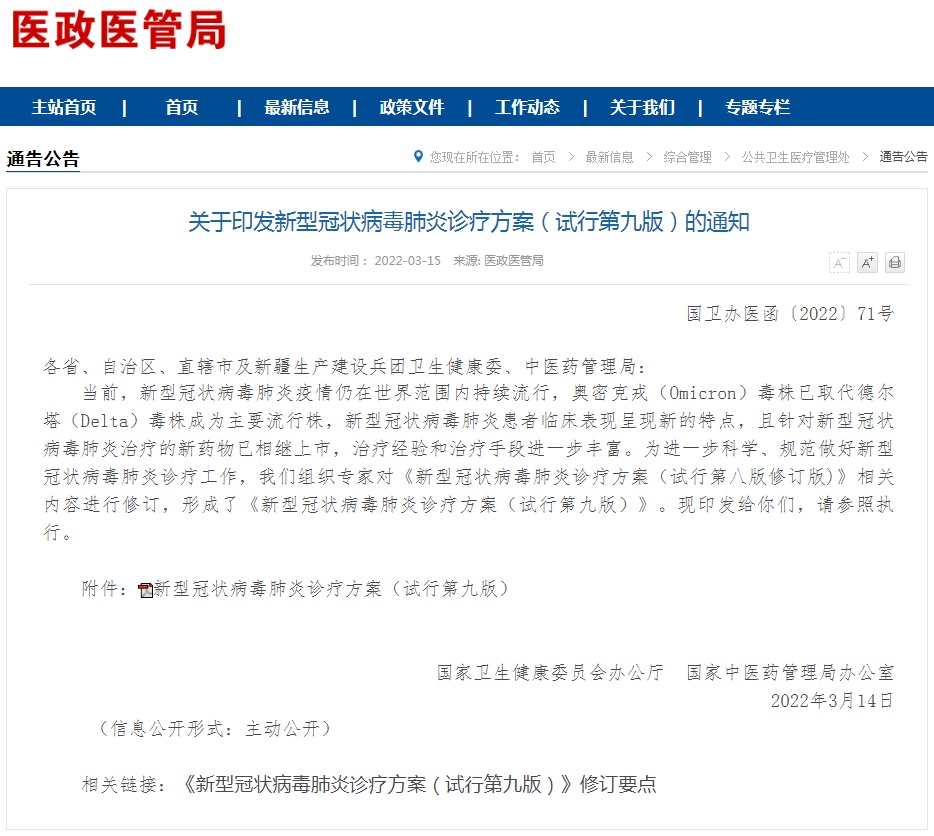 国家卫健委近日发布《新型冠状病毒肺炎诊疗方案(试行第九版)》,针对当前流行的奥密克戎变异株感染性强、轻型病例较多、病死率相对低的特点,提出了优化升级版诊疗方案。其中变化最大的一条是:核酸检测阳性人员不再一律送到定点医院住院治疗,而是采取集中隔离管理的方式,进行对症治疗和病情检测。