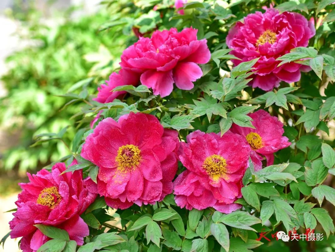 人间四月天,板店赏牡丹。板店艺术馆内的牡丹园,种植了赵粉、姚黄、豆绿、魏紫、洛阳红等近20个品种1000多株牡丹。牡丹园虽然面积不大,但是品种众多,一朵朵娇艳的牡丹花摇曳在枝头,红的似火,粉的如霞,白的像雪,各色牡丹争奇斗艳,姹紫嫣红。