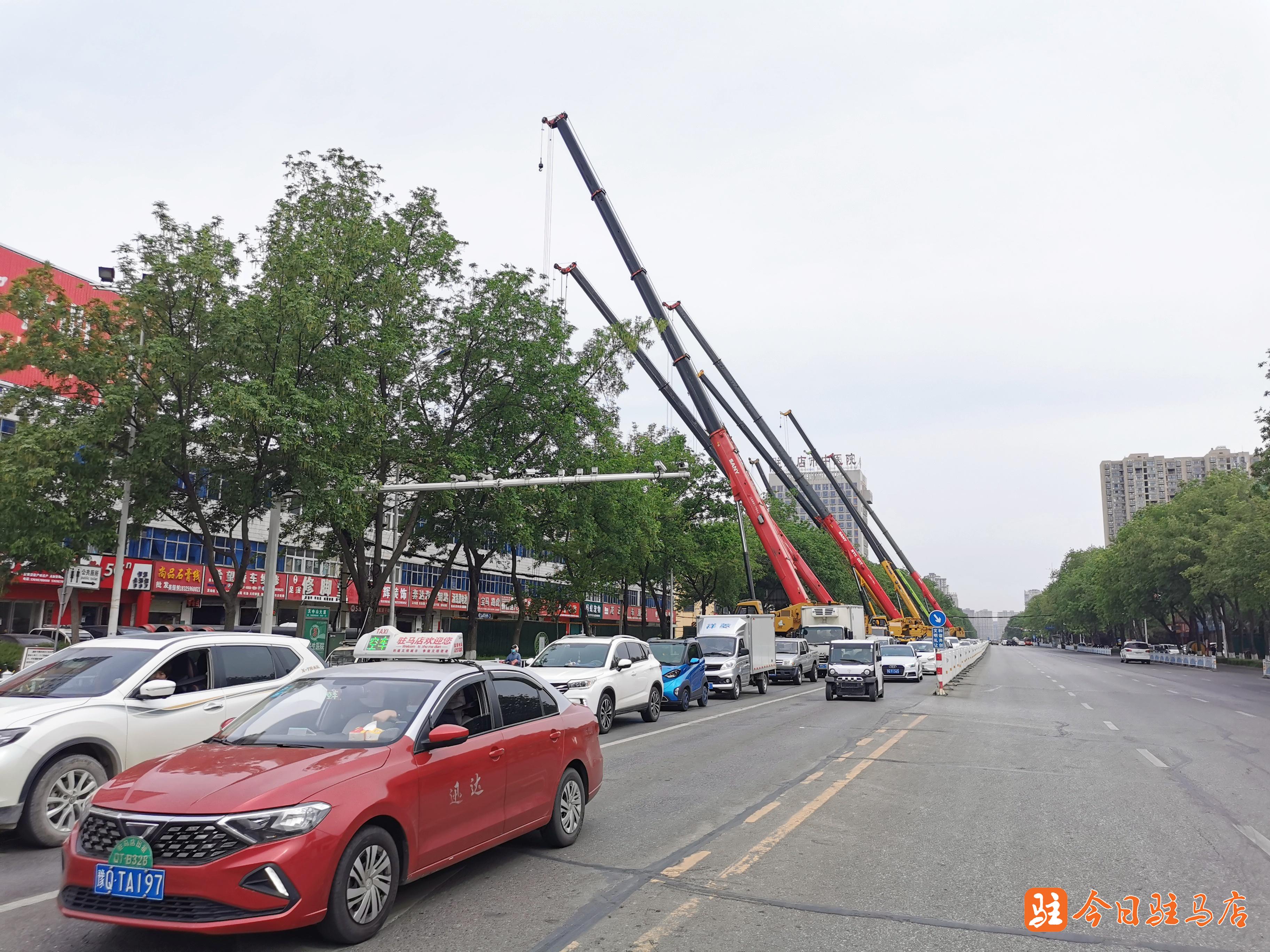 驻马店网讯(记者 张建)4月20日,在市天中山大道与中华大道交叉口附近,九台80吨起重机正在进行拖管作业。