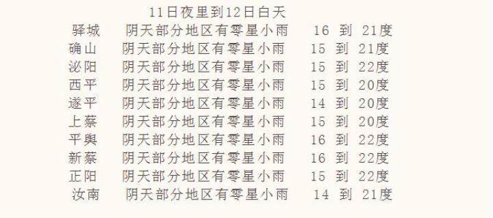 今天白天阴天部分地区有零星小雨,偏北风2到3级,最低温度15到16度,最高温度20到21度,明天夜里到后天零星小雨转阴天,14日阴天有小雨。