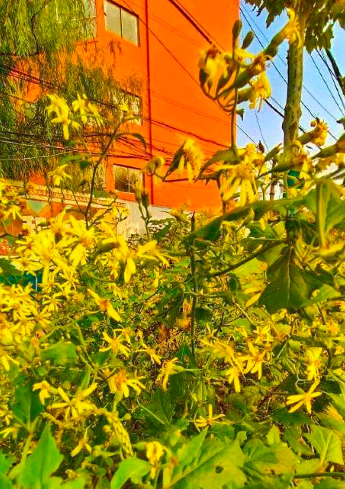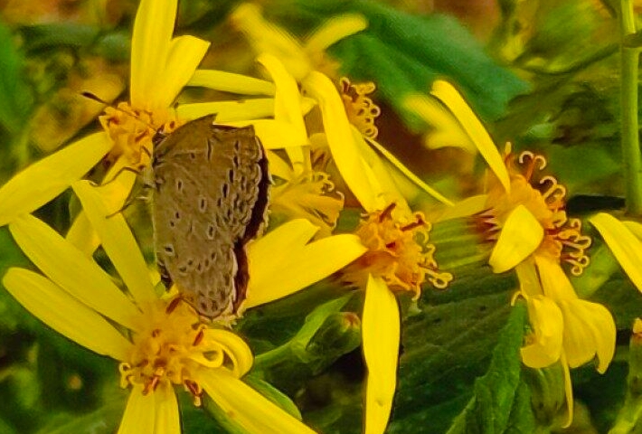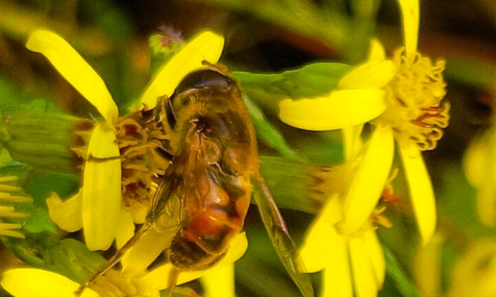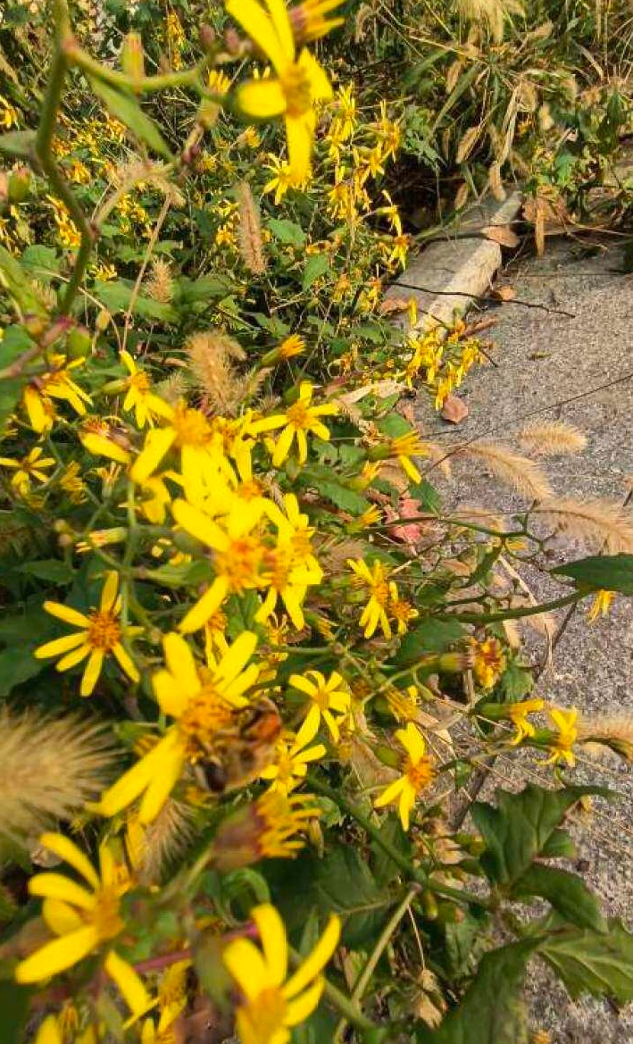 驻马店网讯(记者 王永良)11月1日上午,记者在市汝河大道中段一游园内看到,大片的千里光花开正艳,发出阵阵清香,吸引蜂蝶采蜜忙。