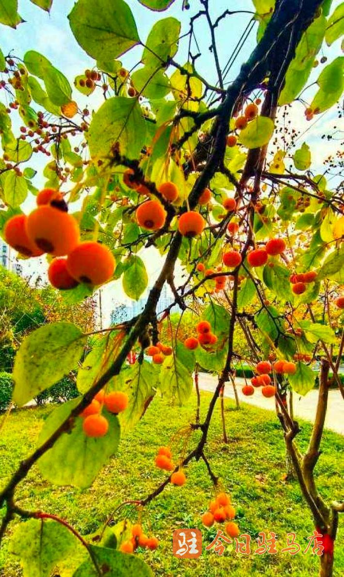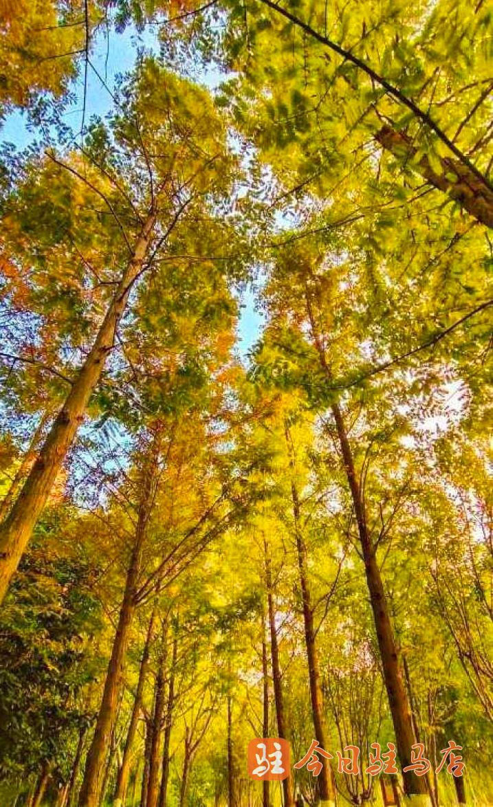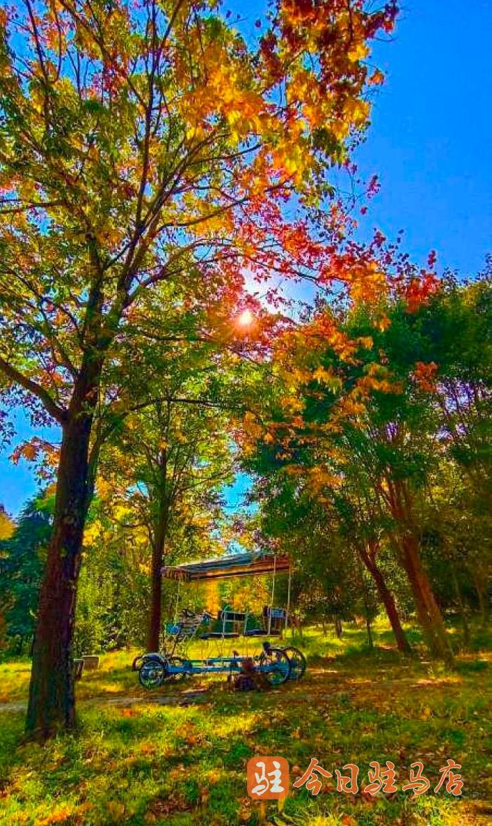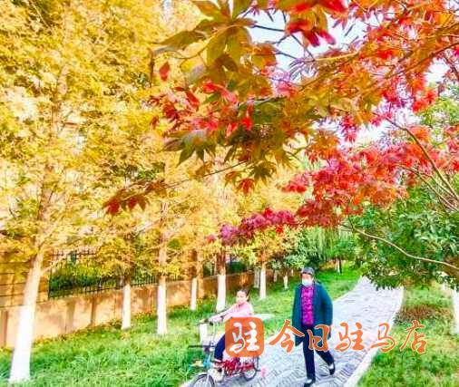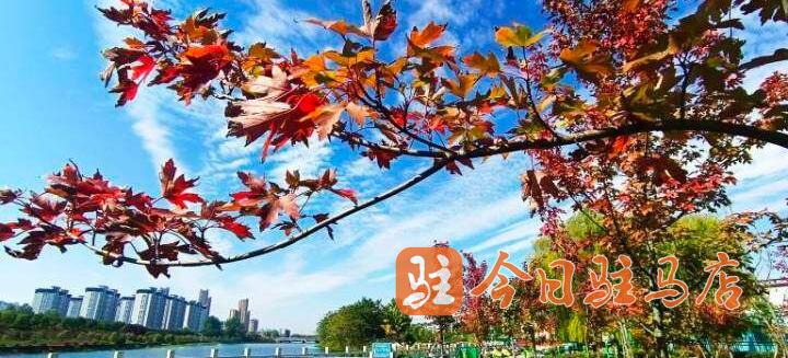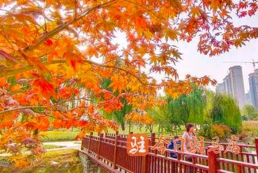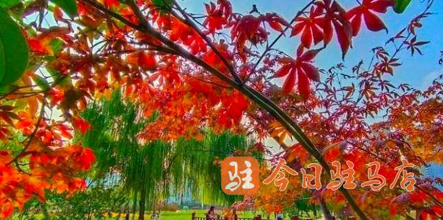 记者在驿城大道两侧沿路公园看到,一片片,一簇簇五角枫叶、银杏、榆叶梅、法桐、水杉等绽放出不同的红色,深红、大红、浅红……,娇艳的“枫”情无与伦比,层层叠叠,错落有致,形成一幅唯美的多彩画卷。