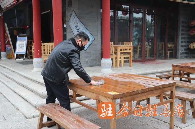 商家对全部桌椅板凳进行清洁归整。