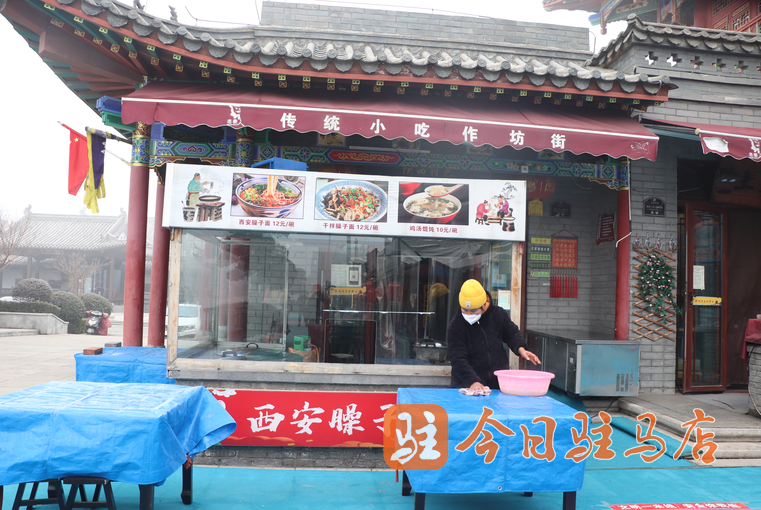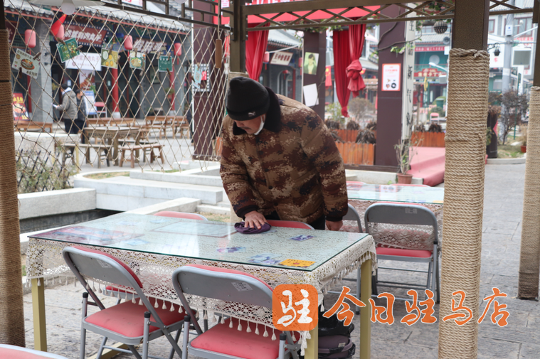 从早上八点半开始,景区内的商户商家就开启了忙碌的清扫工作,餐具、桌椅、摆台、厨具等等都进行了全方位的清洁、消杀工作,并对全部桌椅板凳进行清洁归整,小吃街全部商家统一更换门店宣传灯箱、悬挂上崭新的红灯笼。