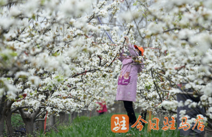 驻马店网(记者 郭建光 通讯员 孙凯)3月27日,汝南县宿鸭湖街道五里岗村,当地果农正在管理果树。近日,河南省驻马店市汝南县境内的桃树、梨树陆续开花,当地果农抢抓农时,抓紧对果树进行疏花、授粉、除虫作业,果园处处一派忙碌景象。