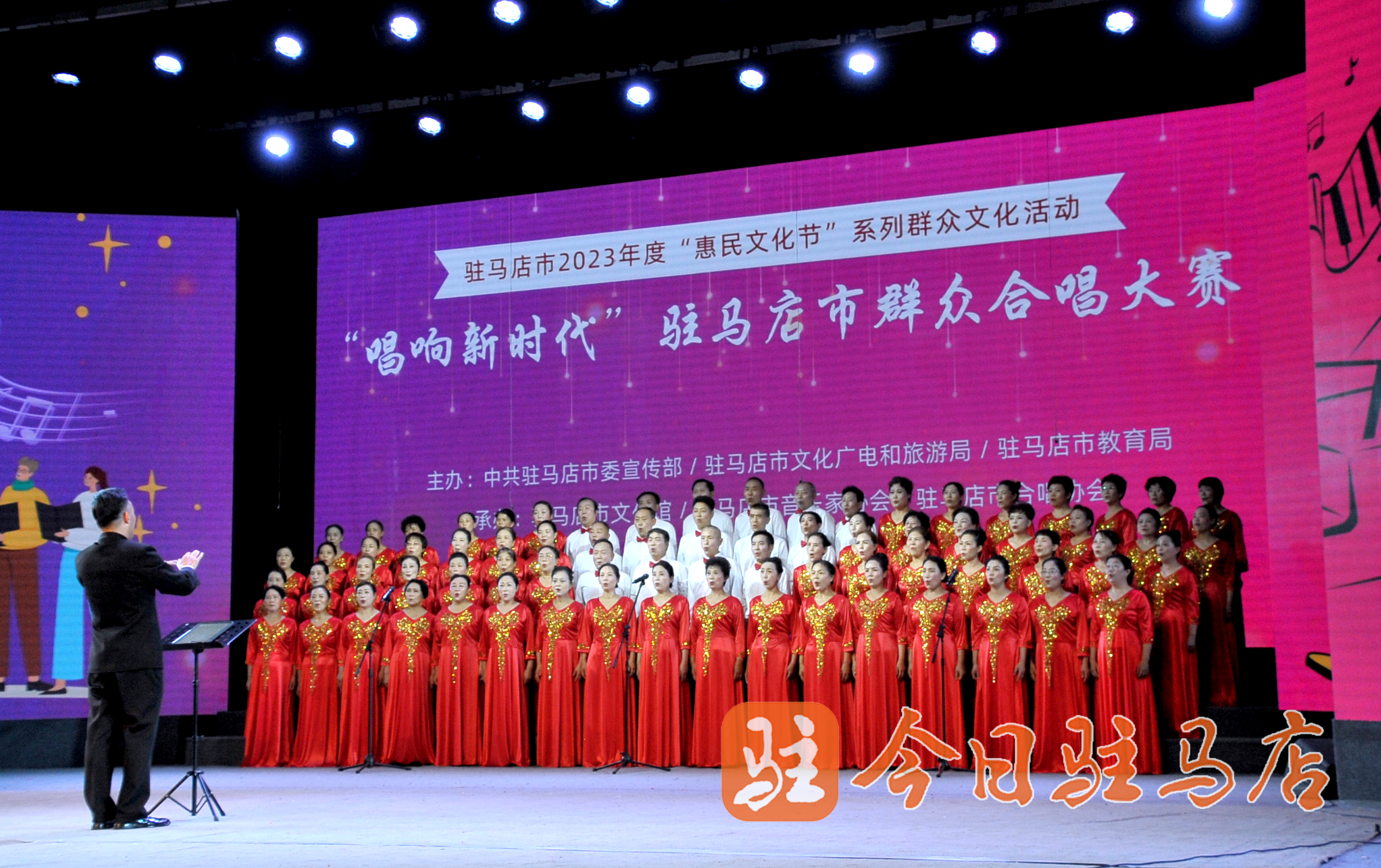 驻马店网讯(记者 王晓晶 通讯员 路会 文/图)华灯璀璨,激情燃烧。7月15日下午,由中共驻马店市委宣传部、驻马店市文化广电和旅游局、驻马店市教育局主办,驻马店市文化馆、驻马店市音乐家协会、驻马店市合唱协会承办的驻马店市2023年度“惠民文化节”系列群众文化活动——“唱响新时代”驻马店市群众合唱大赛在市群星剧场举行,全市20支代表队千余人参加了比赛。