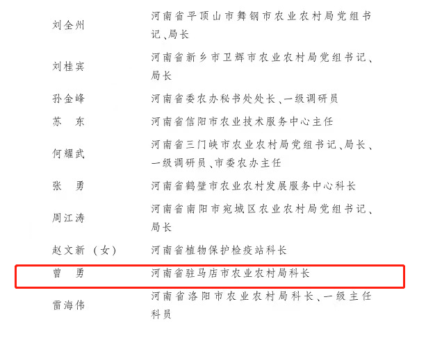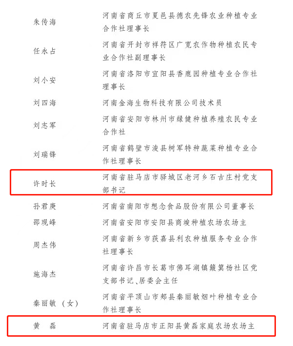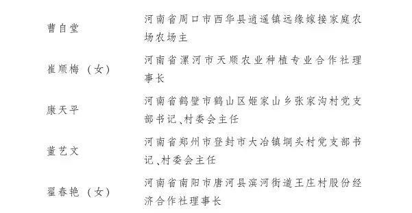 本次河南省被授予全国农业农村劳动模范的共有23人