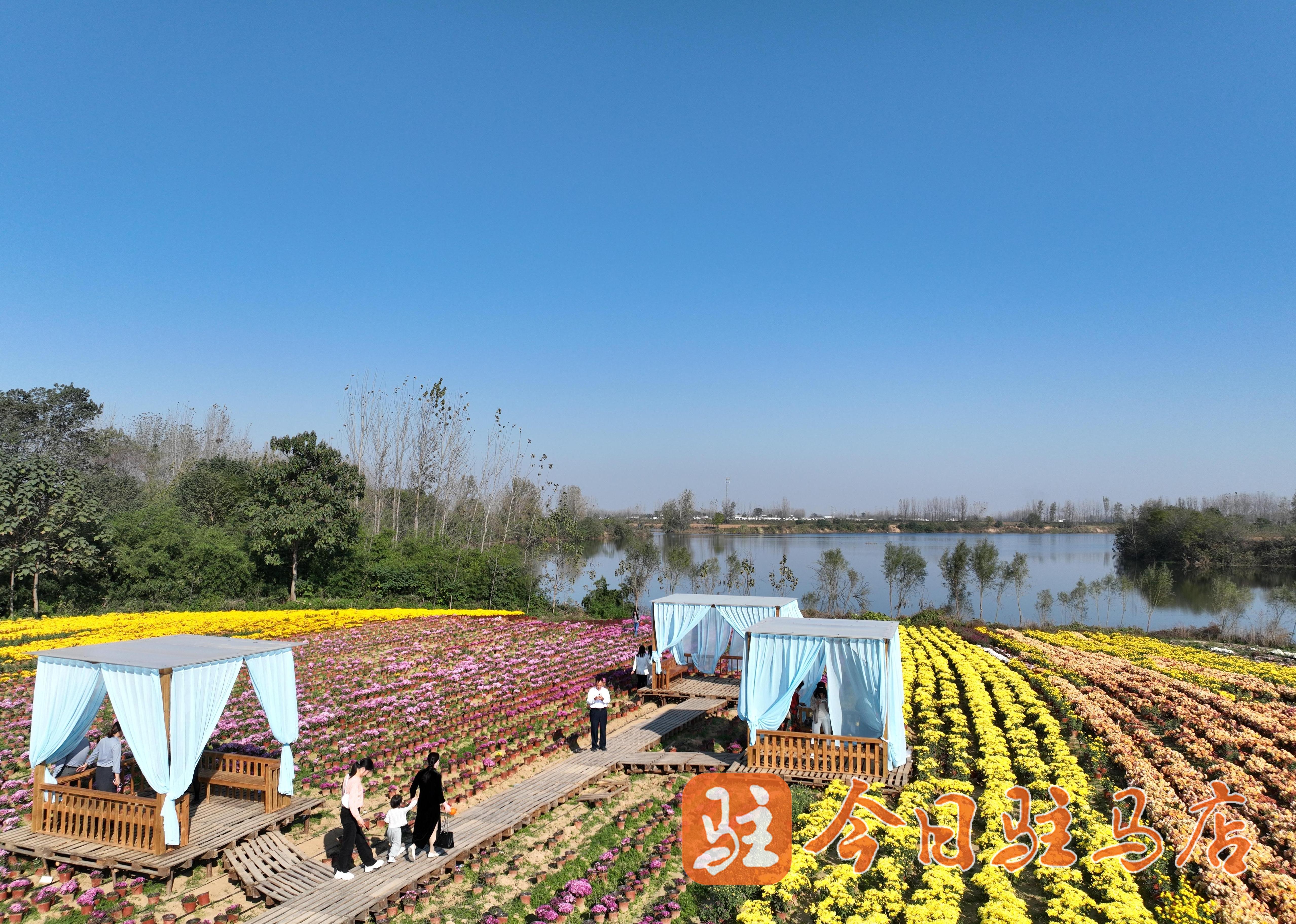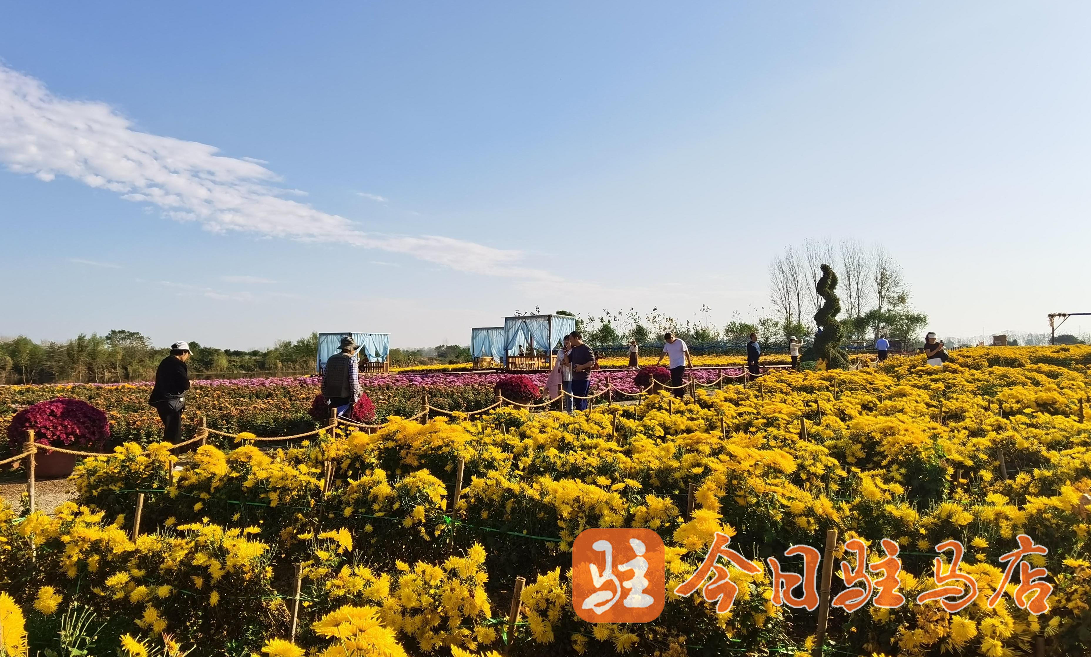 天边菊海,花团锦簇,菊香四溢,成千上万株的菊花连片绽放,静静的汝河把花海环抱入怀,构成一幅迷人的乡村画卷。秋风吹过,鹅黄、艳紫、深红以及纯白色的菊花,随风摇曳,清新娇嫩,楚楚动人,争艳斗姿,又相映成趣,好似在田野上铺就了一块块娇艳的地毯,美不胜收的景色让游客们流连忘返。记者在现场看到,前来赏花打卡的游人络绎不绝。同时,菊花节期间还有丰富多彩的文化演出、汉服秀等特色文化活动。