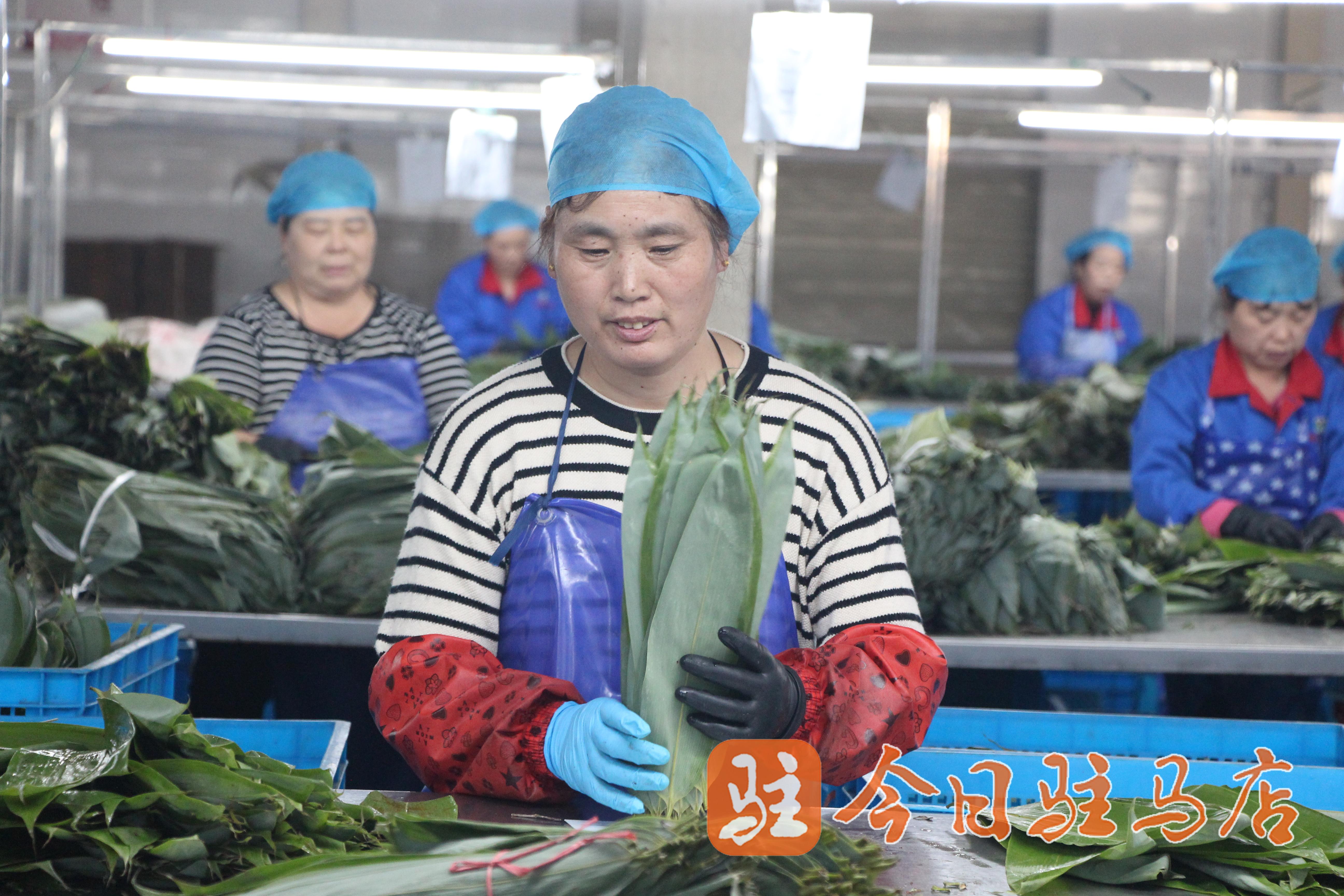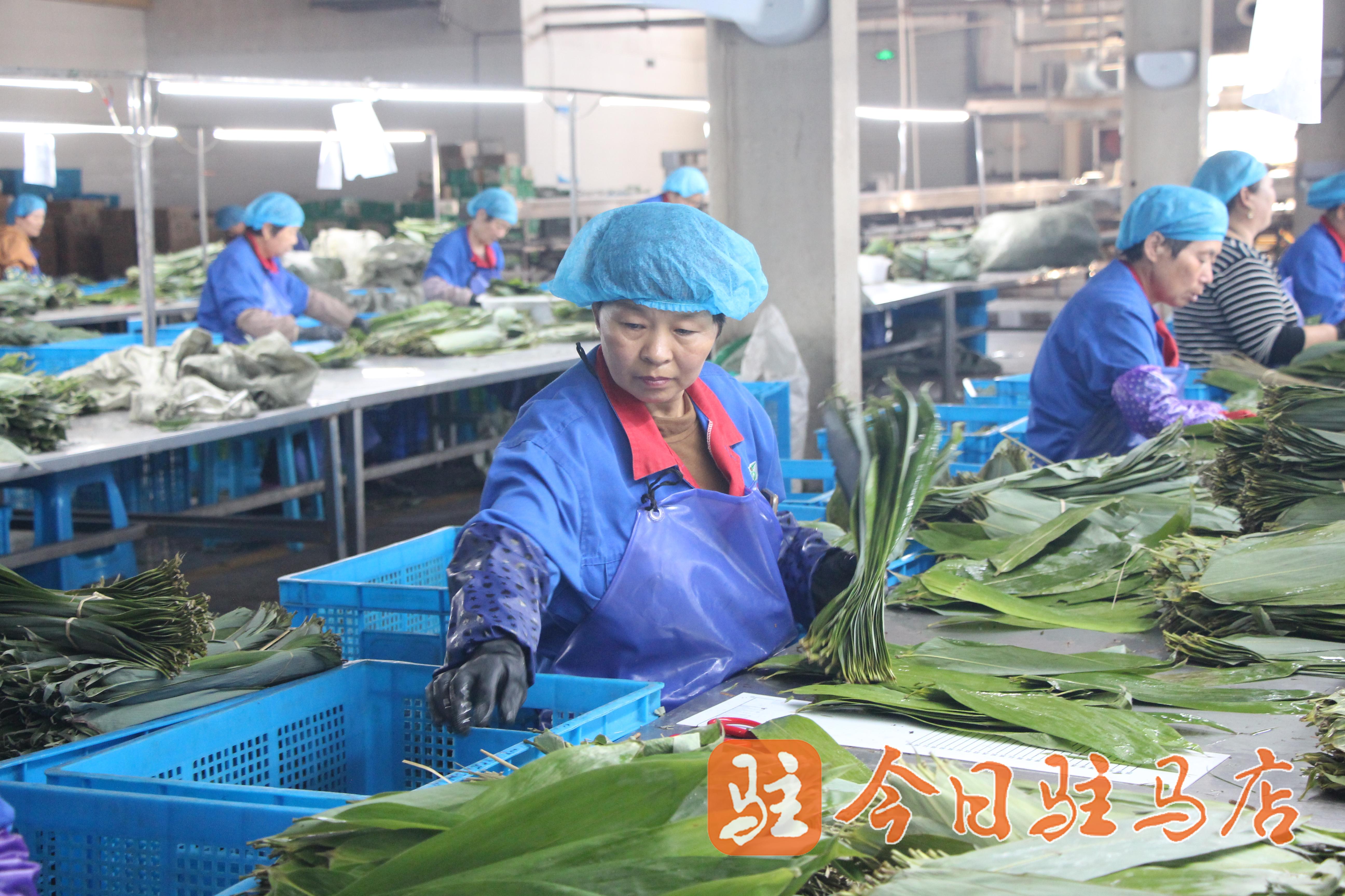 10月31日,遂平县领鑫农业科技有限公司生产车间,数十名女工正在车间清洗、分拣粽叶。