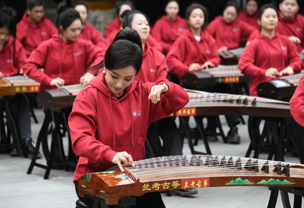 11月15日,中央音乐学院在校师生及全国各地一线古筝教师在活动中演奏古筝曲目《盛世华筝》。