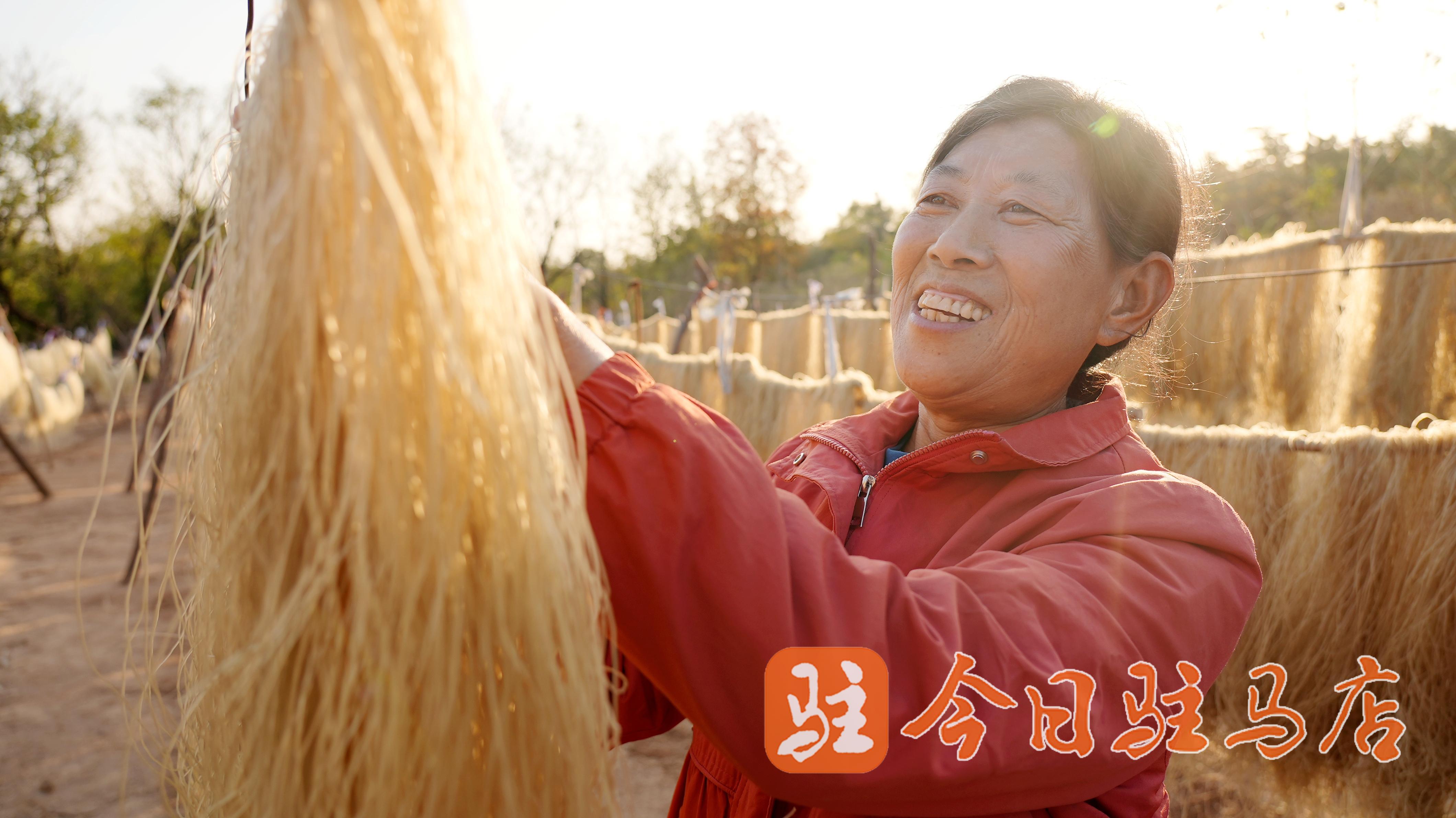 驻马店网讯(记者 张 建)11月19日,驿城区板桥镇黑石山村的村民趁着天气晴好,家家户户都开始晾晒粉条。晾晒场上,一杆杆、一排排晶莹剔透的粉条如丝绸般随风飘动,在冬日暖阳的照射下,格外晃眼;农民们穿梭其间,在不停地抖摆、捋顺着粉条。