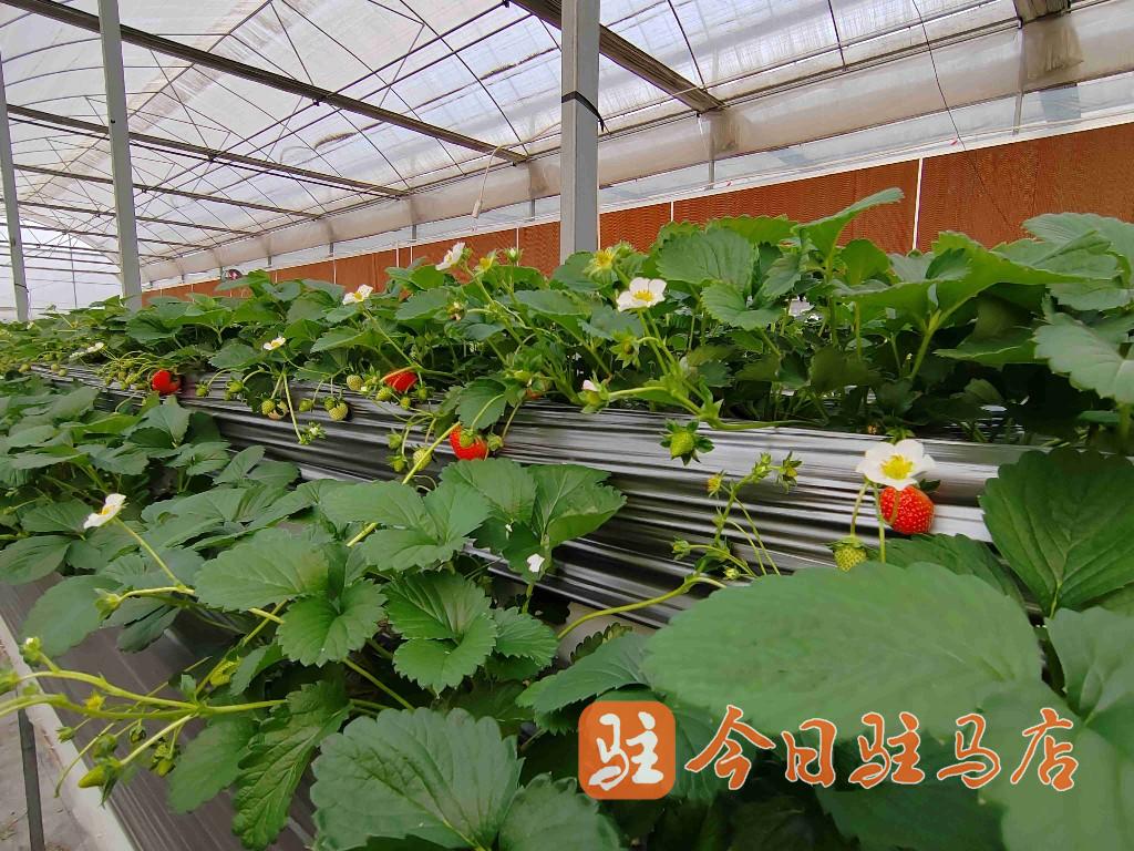驻马店网讯(记者 张遥驼)12月19日,记者刚迈入驿城区天中生态农业草莓采摘园内,一股浓郁的草莓果香扑面而来,只见一垄垄碧绿的草莓植株在半空中整齐排列,形成了一道道“绿植空中长廊”,饱满红润的草莓从藤蔓中悄悄“探”出头来,惹人垂涎。