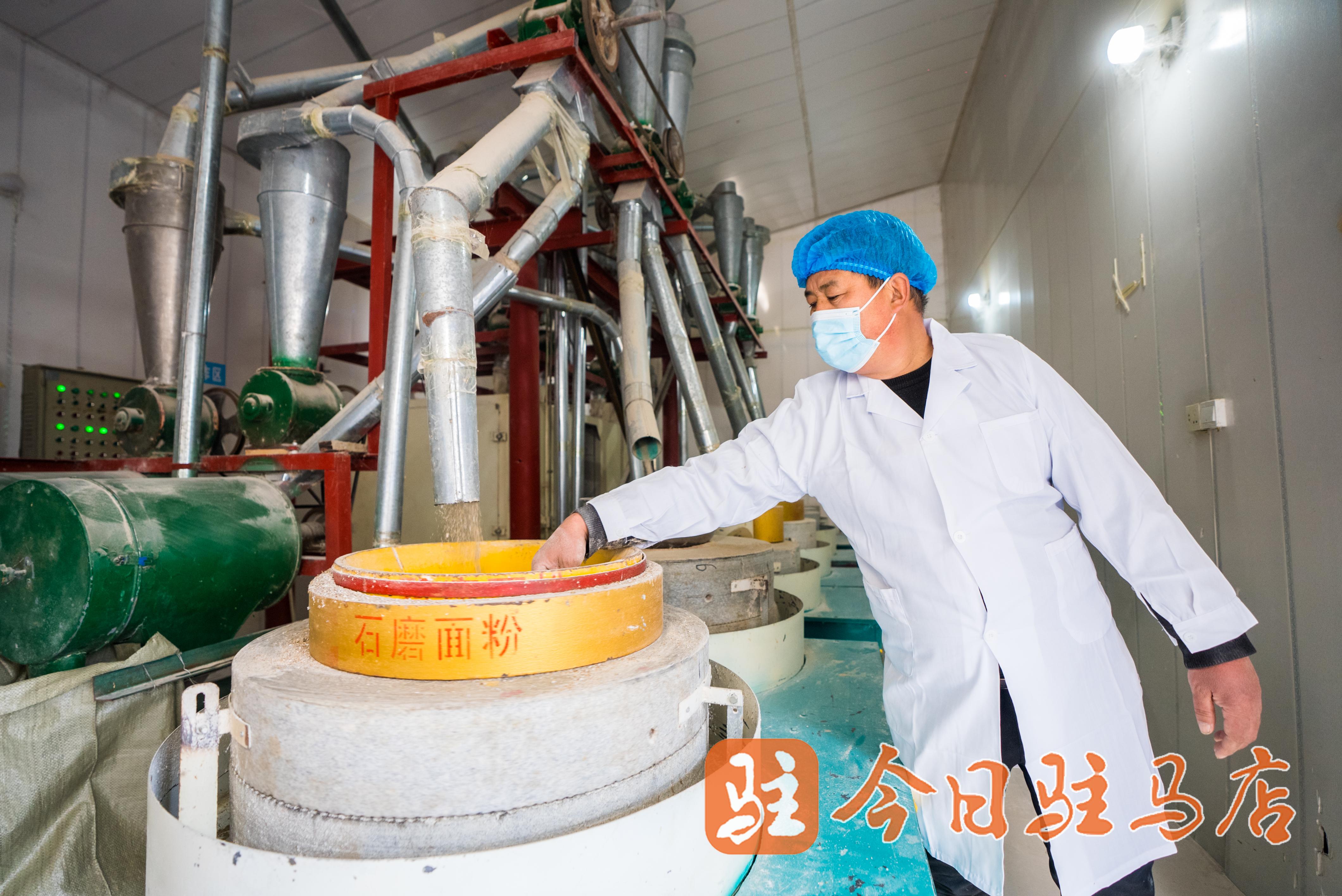 驻马店网讯(记者 许静 见习记者 赵永涛)1月8日,伴着阵阵轰鸣声,经过清洗、粉碎、石磨、筛选、去皮、去铁等十余道全自动工序后,几台承载着“西平小麦”的石磨,在西平县五沟营镇这座看似名不见经传的生产车间里不断研磨,面粉不断倾泻而下,贴上“西平石磨面粉”标签通过电商远销全国各地。