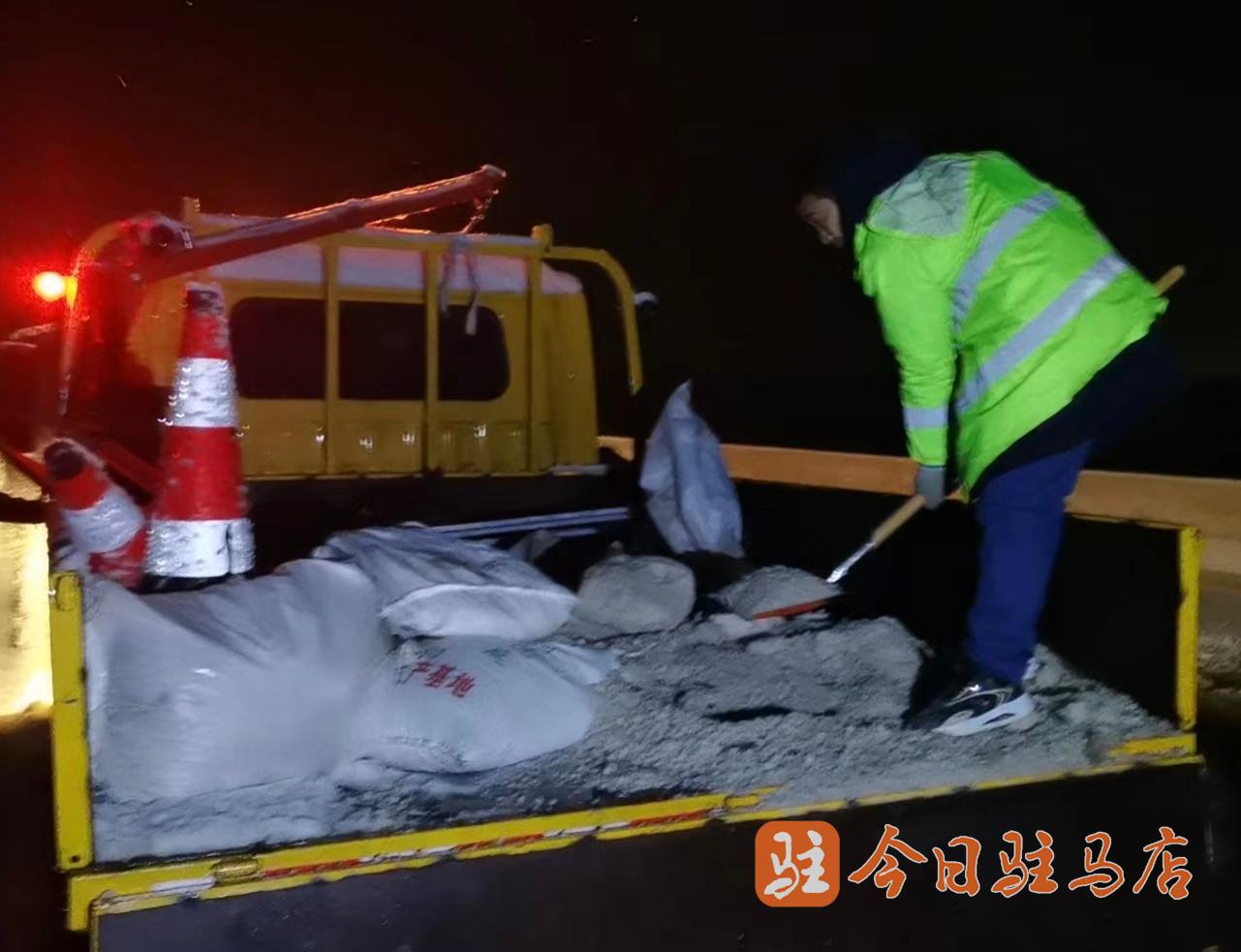 驻马店网讯(记者 孙畅)1月18日,驻马店市遭受寒潮和风雪袭击,气温陡降,部分路面和桥面上的积雪结冰,为应对降雪对道路通行带来的不利影响,市公路工程开发有限公司养护分公司迅速启动紧急预案,组织养护人员开展撒盐除雪保畅通行动,奔赴到指定的G328国道、S330省道的所有桥面和部分结冰路段进行撒盐化冰,有效确保过往车辆行车安全。
