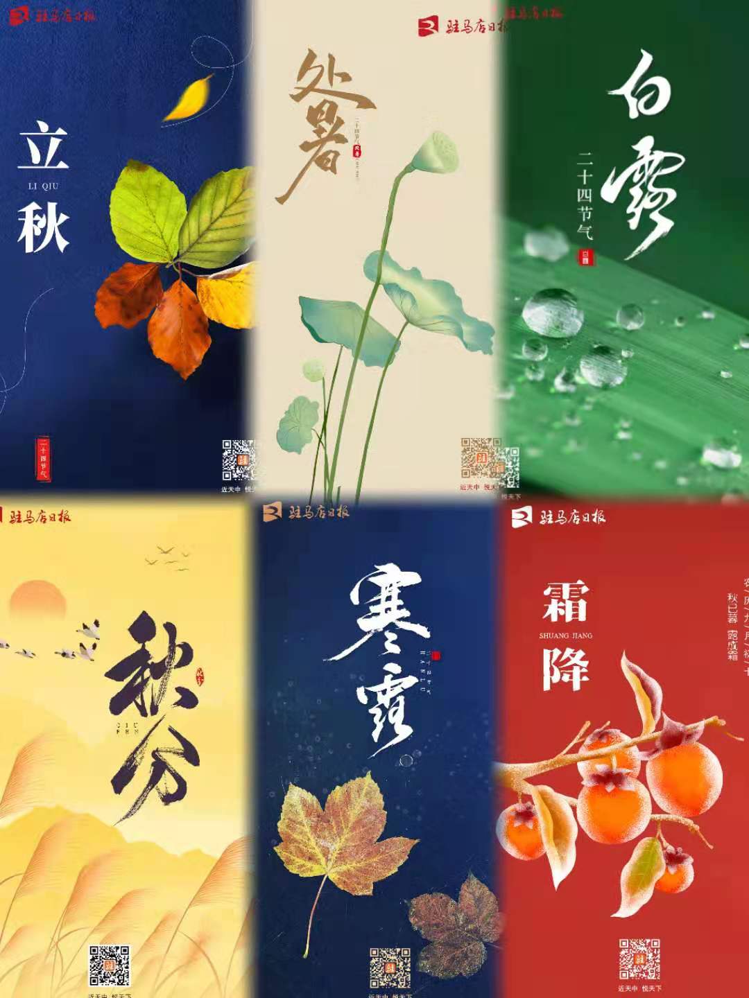 摘要:它不仅是指导农耕生产的时间体系,更是包含有丰富民俗事象的民俗系统。四季流转,一季六节,春有百花秋有月,夏有凉风冬有雪,今日驻马店客户端制作一组海报,让大家沉浸感受二十四节气,共赏人间好时节。松径偏宜,黄菊绕东篱。”
