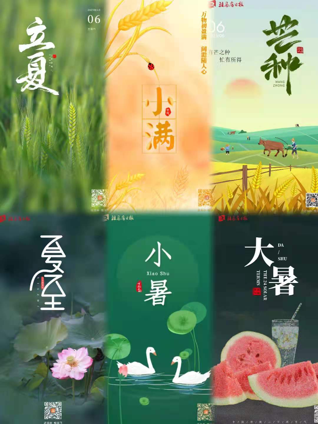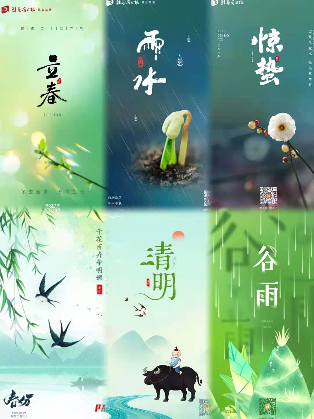 春雨惊春清谷天,夏满芒夏暑相连。秋处露秋寒霜降,冬雪雪冬小大寒。二十四节气准确地反映了自然节律的变化,在人们日常生活中发挥了极为重要的作用。它不仅是指导农耕生产的时间体系,更是包含有丰富民俗事象的民俗系统。二十四节气蕴含中国人的智慧,几千年来,二十四节气一直是重要的“农业气候历”,2016年列入联合国教科文组织人类非物质文化遗产代表作名录。四季流转,一季六节,春有百花秋有月,夏有凉风冬有雪,今日驻马店客户端制作一组海报,让大家沉浸感受二十四节气,共赏人间好时节。
