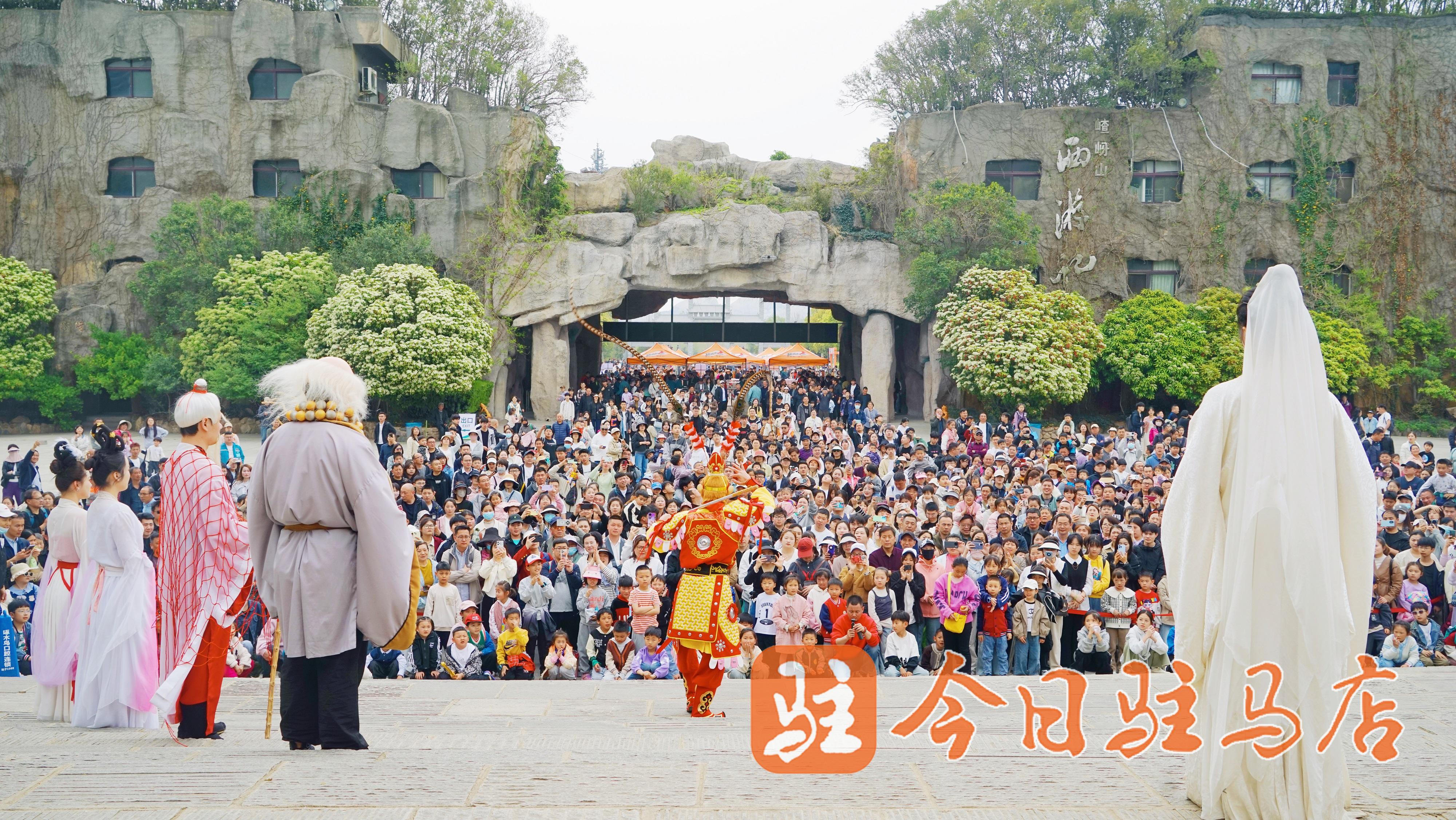 嵖岈山景区第十二届西游文化节——“哪吒传奇”精彩持续。全天西游主题演出精彩不断,游客与孙悟空、哪吒、猪八戒等近距离欢乐互动。清明假期第一天,嵖岈山景区就开启“人从众”模式。