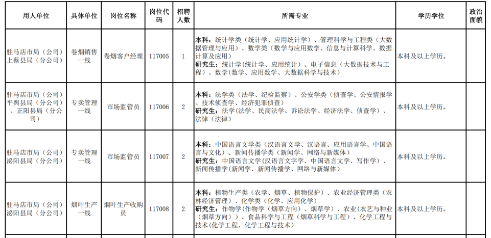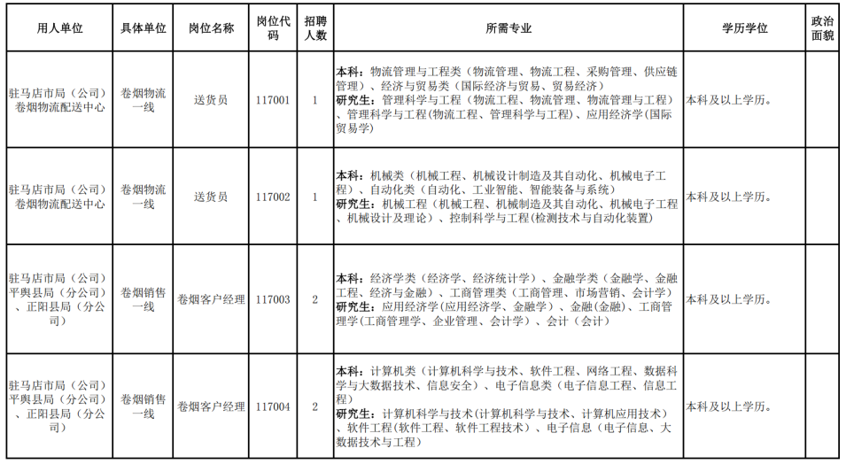 招聘信息在国家烟草专卖局政府网站和河南省烟草专卖局(公司)门户网站上发布。