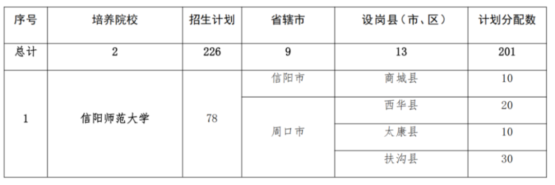 全省计划定向招收本科层次“小学教育”地方公费师范生226人,培养乡村小学、教学点师资,实施综合培养,由各培养高校在当年核定的普通招生计划总规模内统筹安排,均为师范类,计划类别为地方公费师范生,招生计划见附件3。