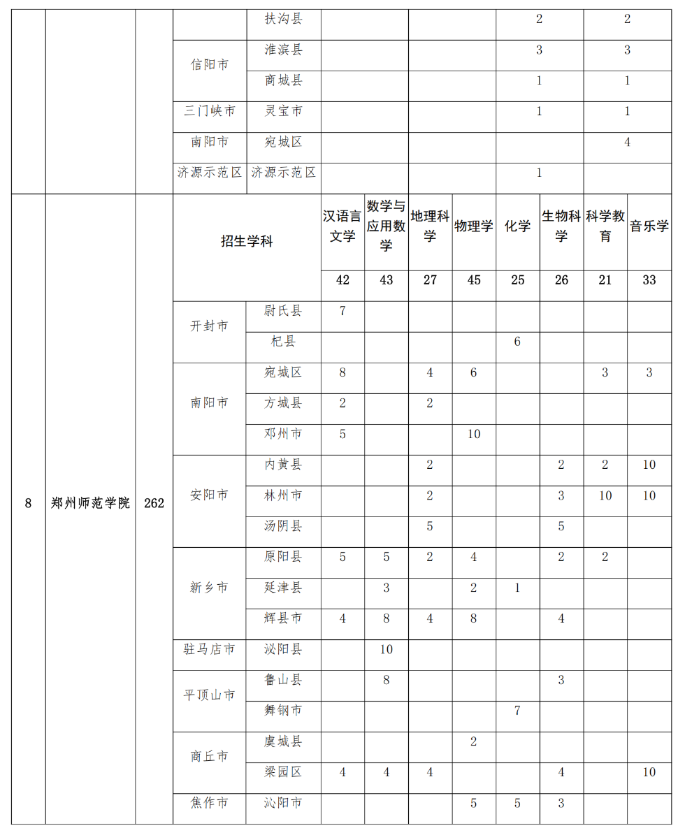 2.河南省 2025年“学科教师”地方公费师范生本科层次定向招生分布表