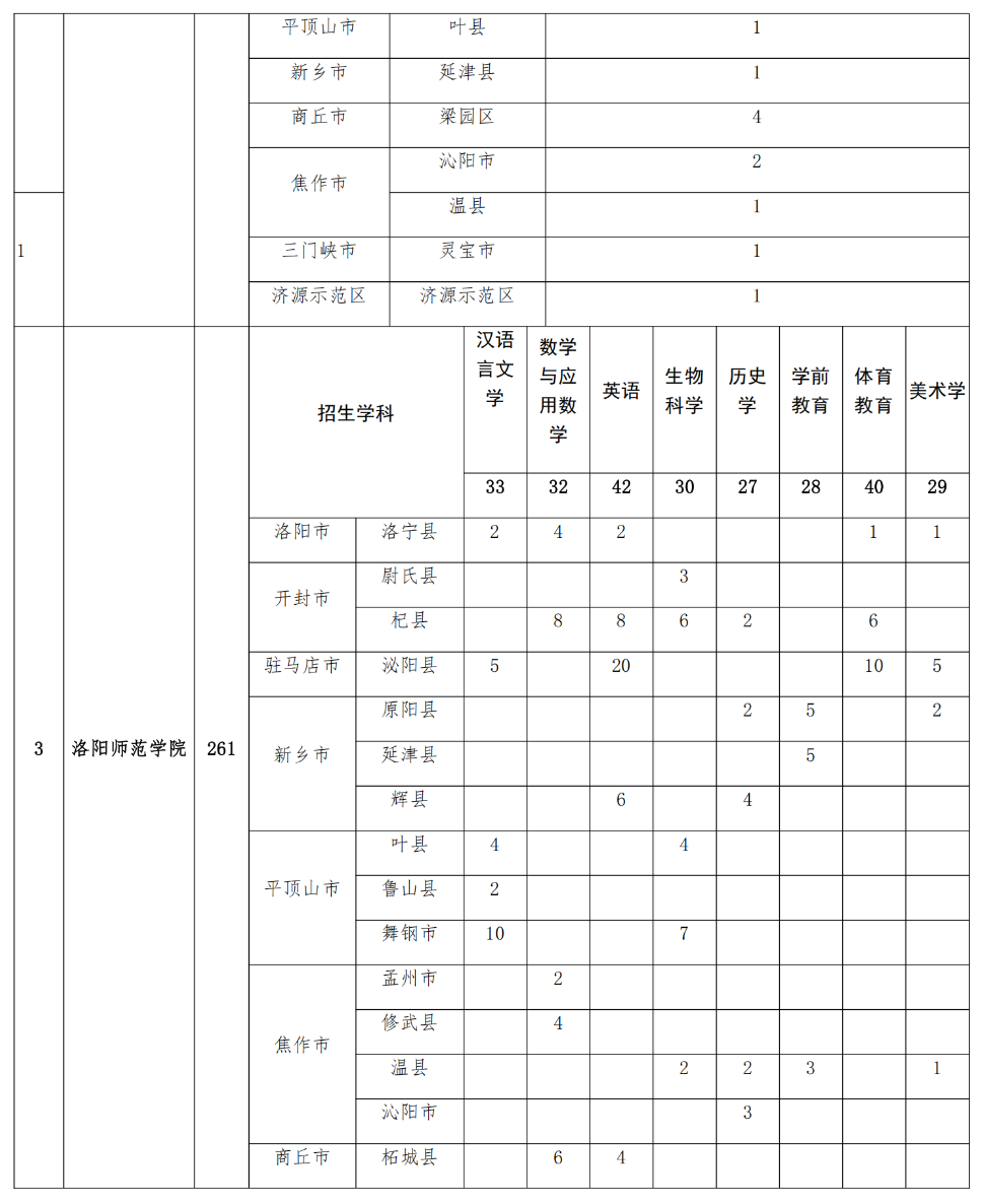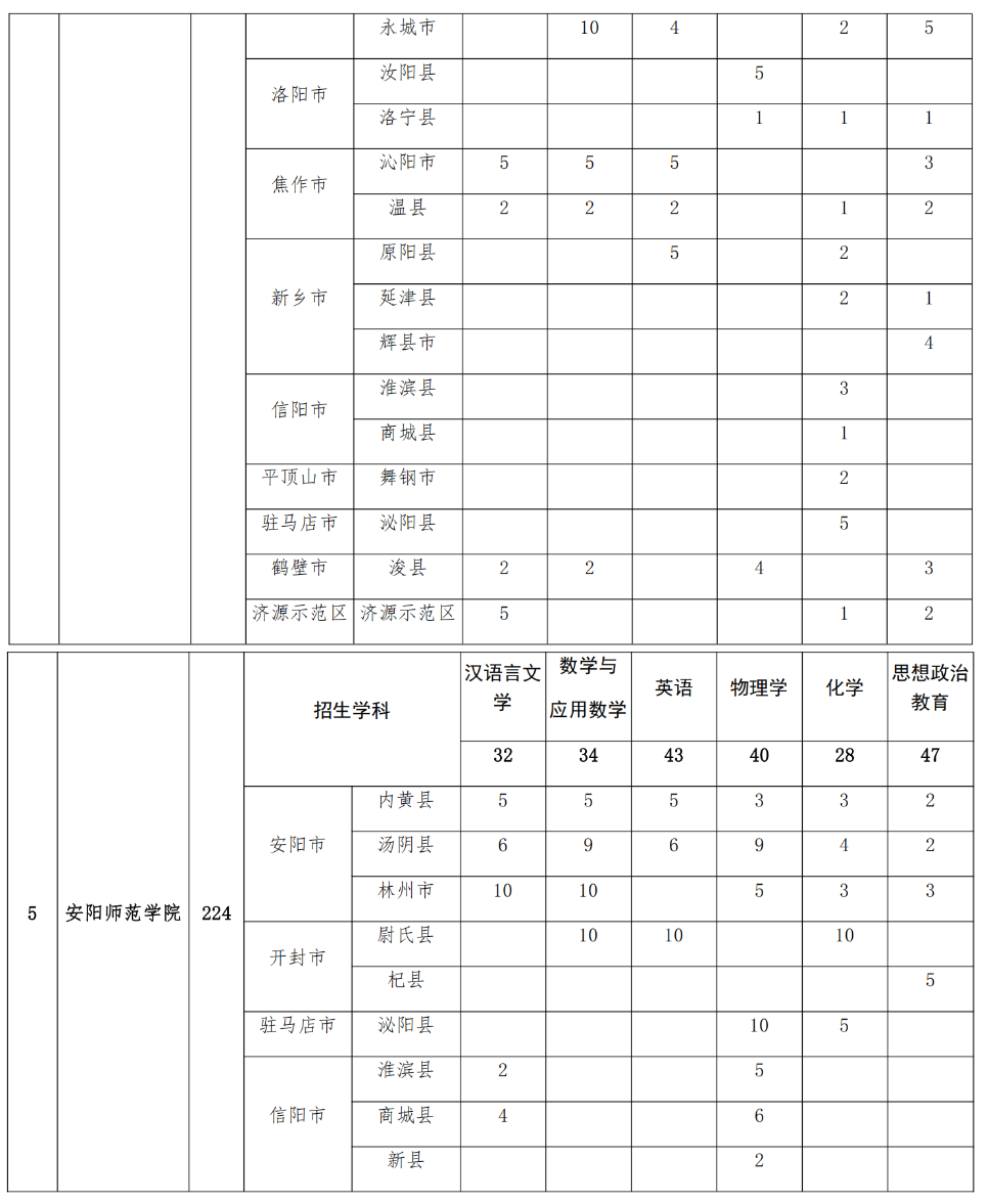 3.河南省 2025年“小学教育”地方公费师范生本科层次定向招生分布表