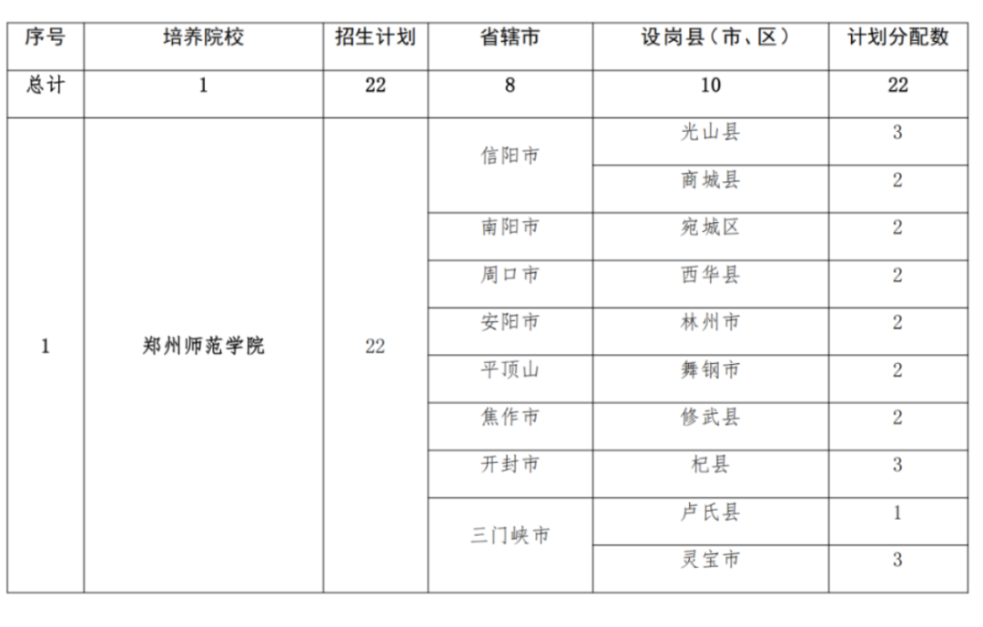 全省计划定向招收本科层次“特殊教育”地方公费师范生22人,由培养高校在当年核定的普通招生计划总规模内统筹安排,均为师范类,计划类别为地方公费师范生,招生计划见附件4。