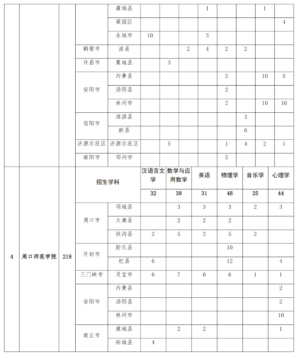 4.河南省 2025年“特殊教育”地方公费师范生本科层次定向招生分布表