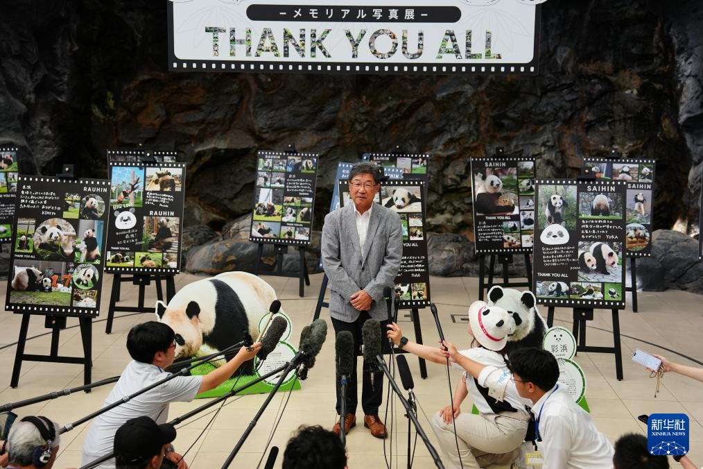 6月28日,在日本和歌山县,冒险世界游乐园园长今津孝二送别大熊猫前接受记者采访。新华社记者 贾浩成 摄
