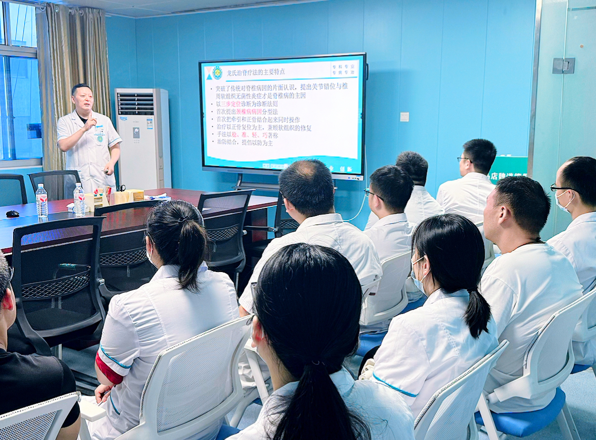 近日,驻马店魏道德骨科医院组织了一场由疼痛科主任李旭主讲,以“龙氏治脊疗法在颈椎病中的应用”为主题的医师专题培训。