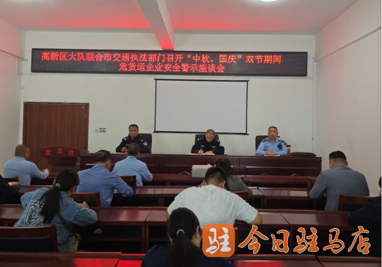 为全力确保交通运输安全生产形势稳定,9月25日,驻马店市交通运输综合行政执法支队联合高新区交警大队,组织召开了辖区危货运输企业安全警示座谈会,并向企业发放《国庆、中秋双节期间交通运输安全生产提示函》。