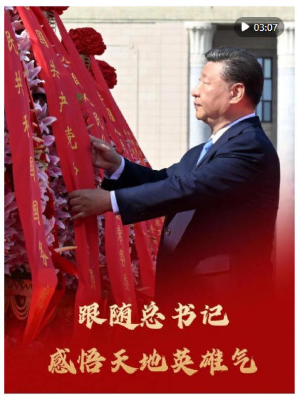 这些年来,总书记多次看望慰问抗战老战士、革命烈士家属,考察参观革命纪念馆、抗战纪念地。敬献花篮、倾心交谈、庄严授勋……每一个动作,每一项安排,都是将历史铭记于心的躬身践行,都是对英雄前辈的崇高敬意。