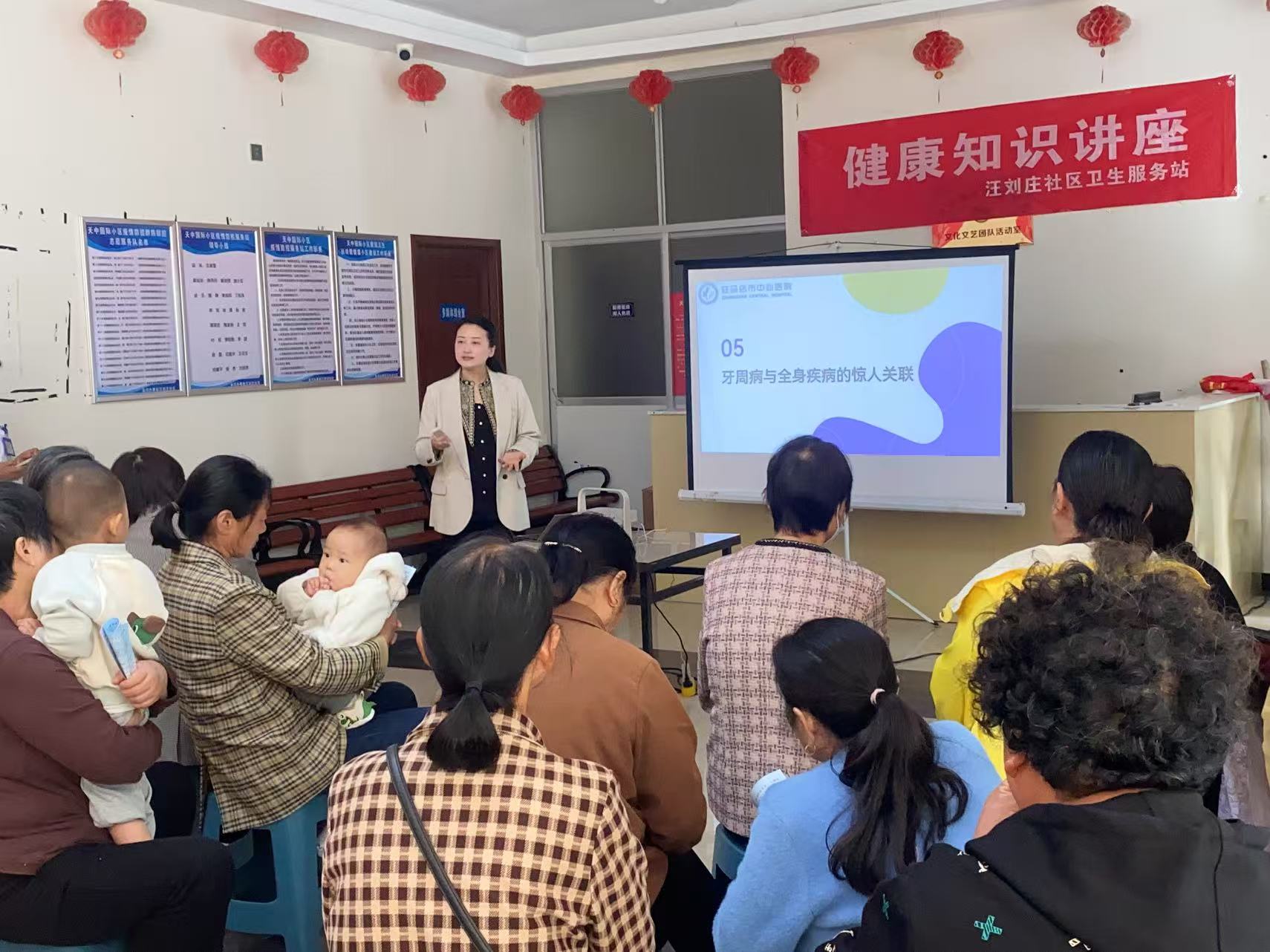 义诊活动周期间,医院公共卫生科联合口腔科走进汪刘庄社区卫生服务站为群众开展健康知识讲座。口腔科副主任彭波为群众进行科普讲座,为大家答疑解惑。