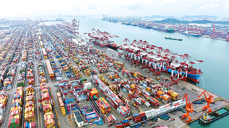 10月13日在山东港口青岛港拍摄的外贸集装箱码头(无人机照片)。