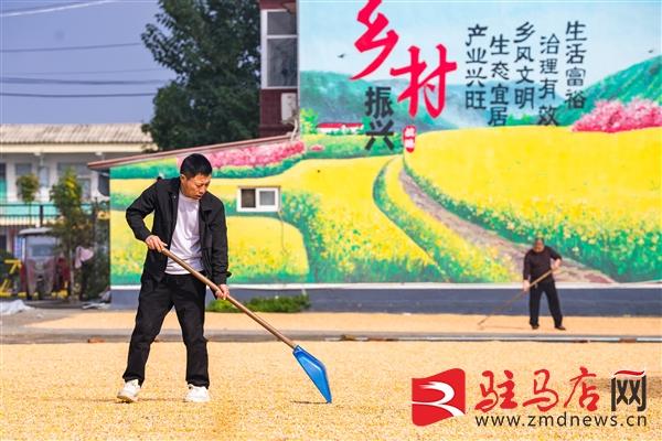 10月14日,西平县在持续多日的阴雨中迎来宝贵的降水间歇期,当地农民正抢抓晴好天气,及时晾晒收获的秋粮。 见习记者 赵永涛 摄