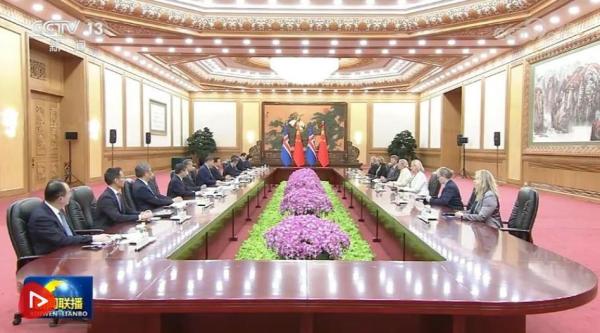10月14日上午,国家主席习近平在北京人民大会堂会见来华出席全球妇女峰会的冰岛总统托马斯多蒂尔。