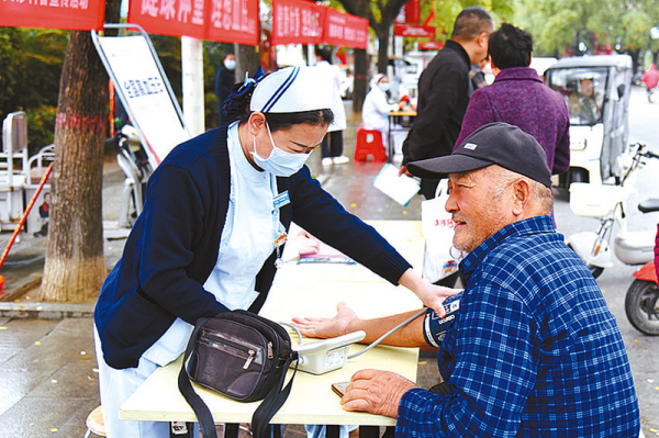 摘要:10月8日是第28个全国高血压日,今年主题为“健康体重、理想血压”。10月9日,确山县人民医院在靖宇广场开展义诊科普宣传活动,将健康服务送到群众家门口。通讯员 刘丽君 苏 楠摄影报道