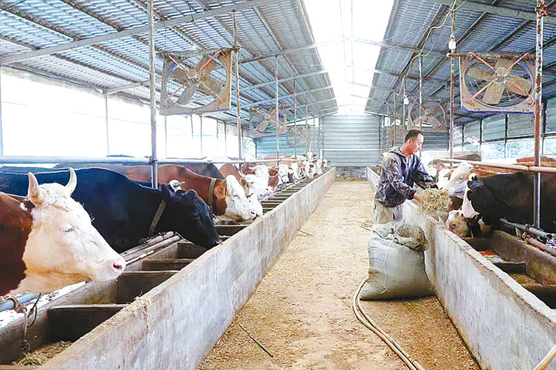 近日,正阳县寒冻镇徐庄村的养殖户正忙着给肉牛投喂饲料。依托当地资源优势,该村每年收储1万亩地的花生秧与4000吨小麦秸秆,将原本的农业废弃物加工成牛、羊、兔专用饲料,既解决秸秆处理难题,又形成年产值300万元的产业链,走出一条“资源循环利用+特色养殖”的乡村振兴路子。