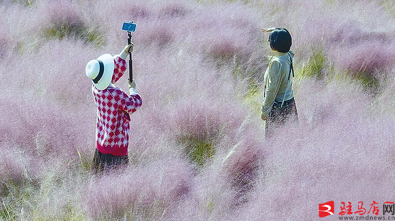 近日,在市区人民公园,粉色花海在湖畔摇曳,空气中弥漫着梦幻般的粉色薄雾;在市区文明大道北段,粉黛乱子草约有一米高,已进入最佳赏花期,远远望去,连簇成片,在阳光的照耀下美轮美奂、如云似霞;在上蔡县蔡明园公园,大片粉色云雾悄然绽放,穿梭在这片粉色的云海中,随手一拍便成大片。