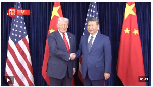 当地时间10月30日上午,国家主席习近平在釜山同美国总统特朗普举行会晤。